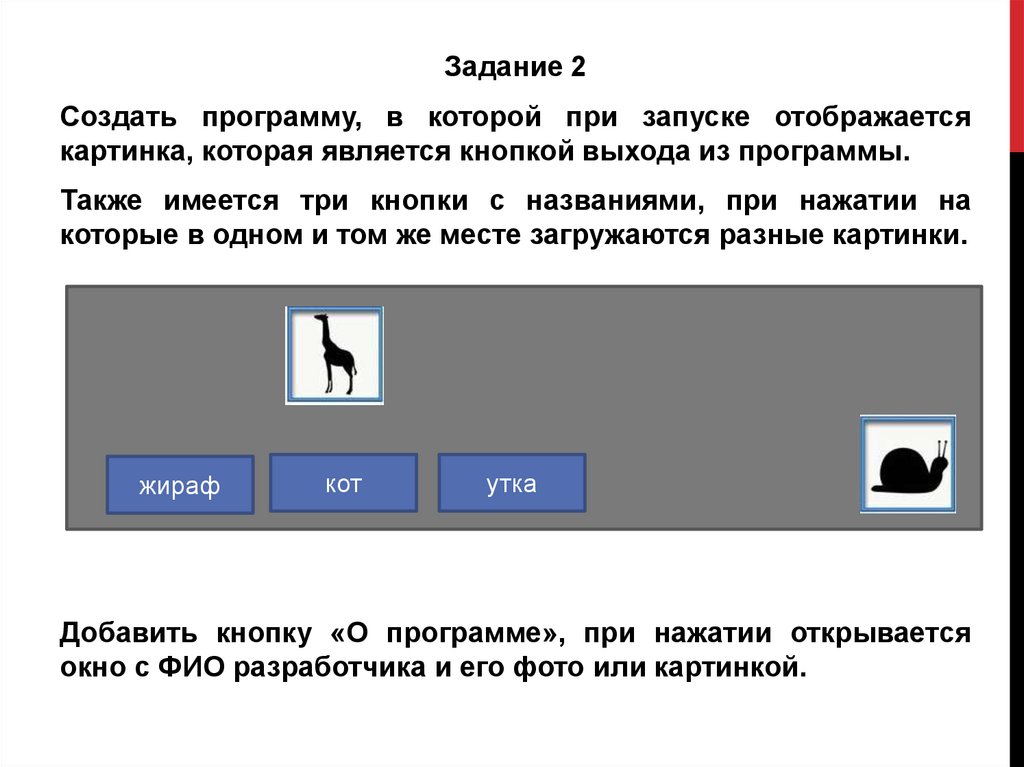 Задание1: Создать программу с 2-мя картинками, одна из которых