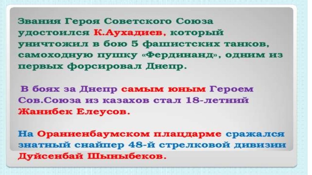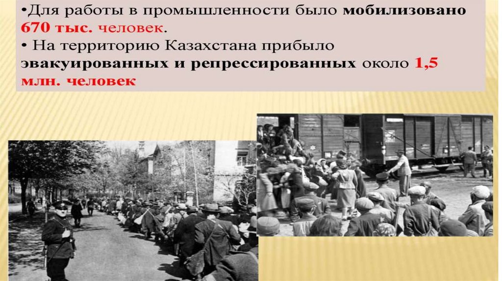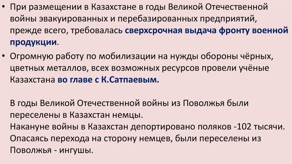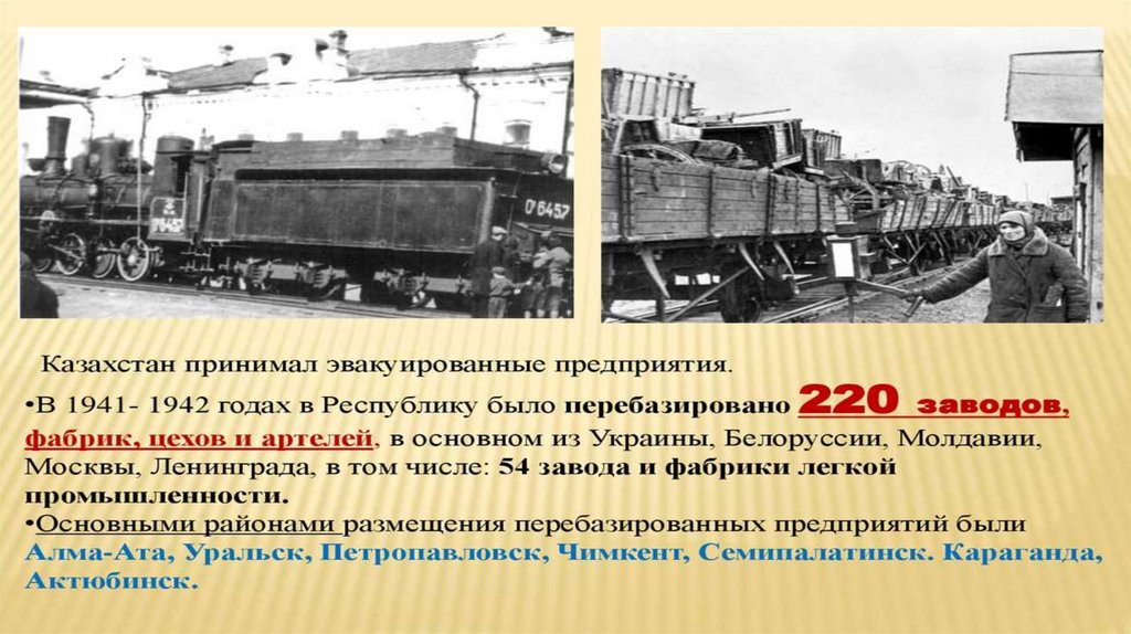• При размещении в Казахстане в годы Великой Отечественнойвойны эвакуированных и перебазированных предприятий,
