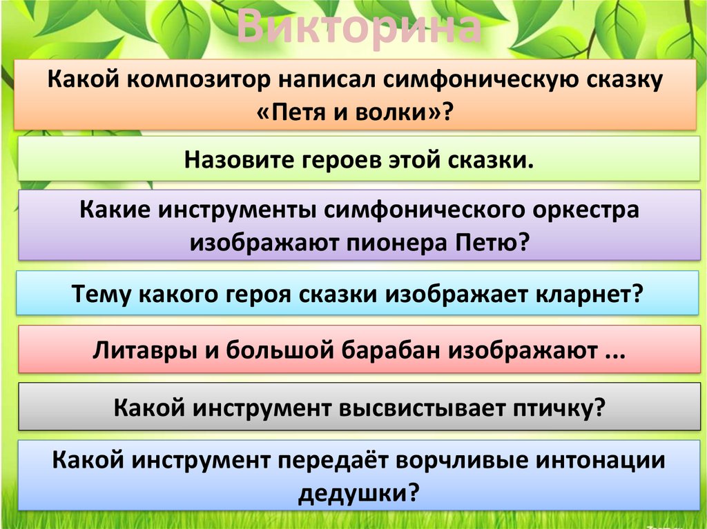 ВикторинаКакой композитор написал симфоническую сказку