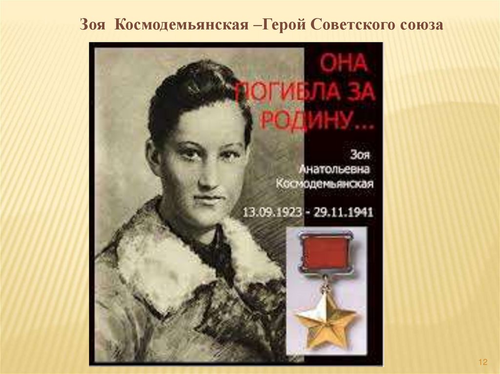 Зоя Космодемьянская –Герой Советского союза12