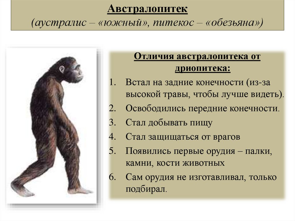 Австралопитек(аустралис – «южный», питекос – «обезьяна»)