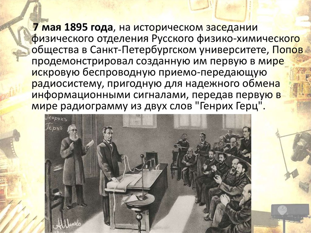7 мая 1895 года, на историческом заседаниифизического отделения Русского физико-химического