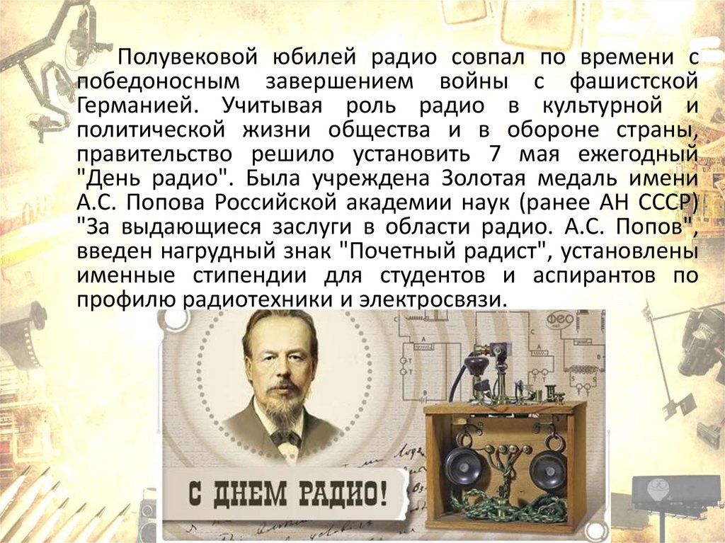 "День радио". Была учреждена Золотая медаль имени
