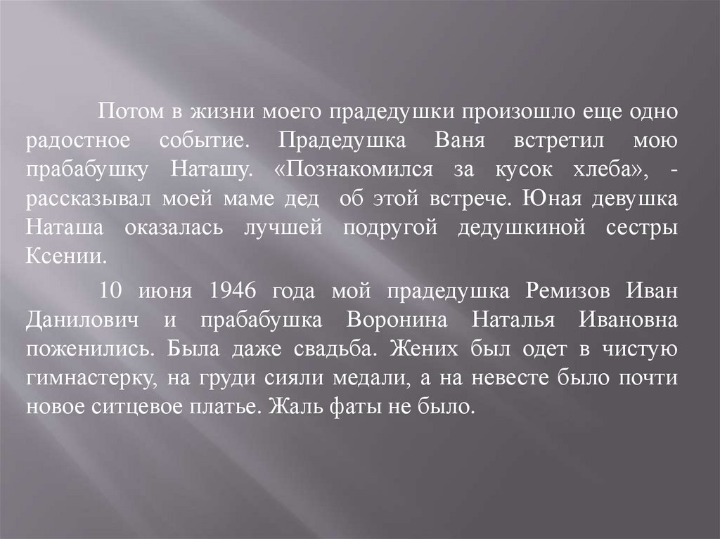 Потом в жизни моего прадедушки произошло еще однорадостное событие. Прадедушка Ваня встретил мою