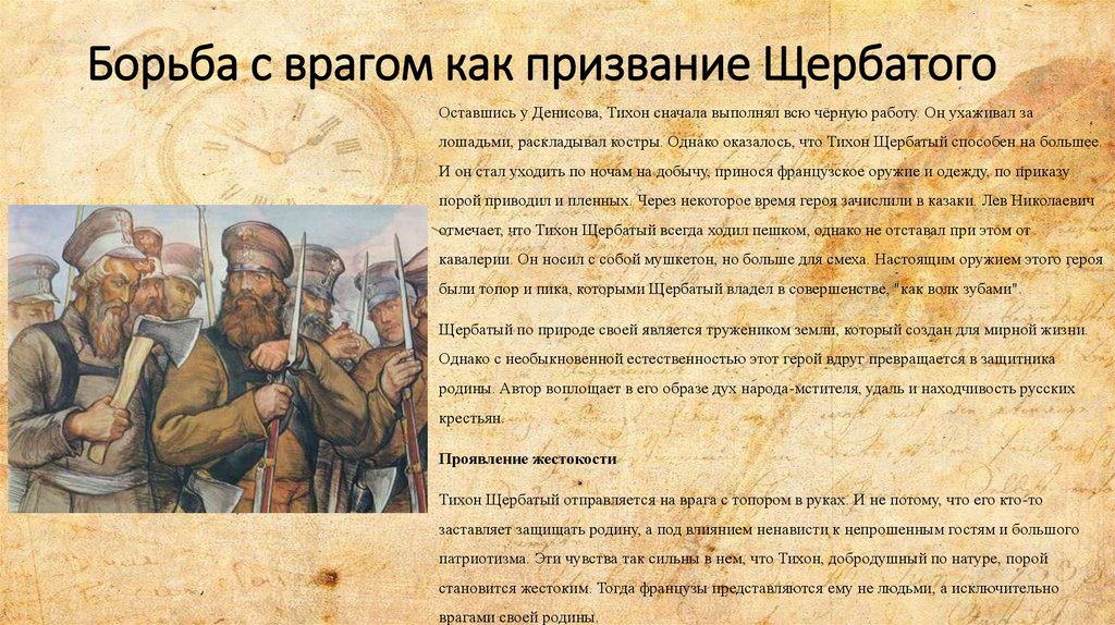 Борьба с врагом как призвание ЩербатогоОставшись у Денисова, Тихон сначала выполнял всю чёрную работу. Он ухаживал за