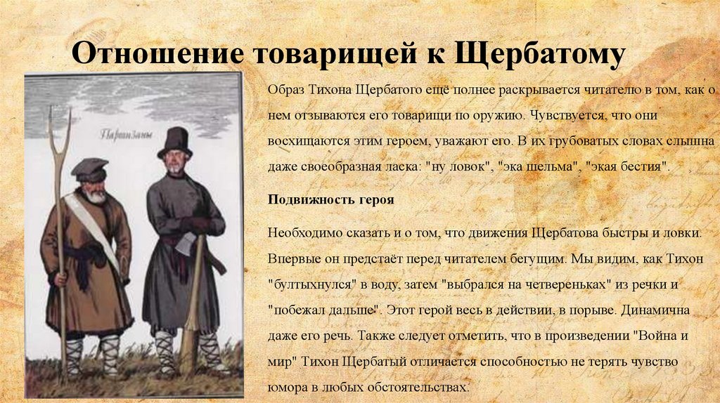 Отношение товарищей к ЩербатомуОбраз Тихона Щербатого ещё полнее раскрывается читателю в том, как о