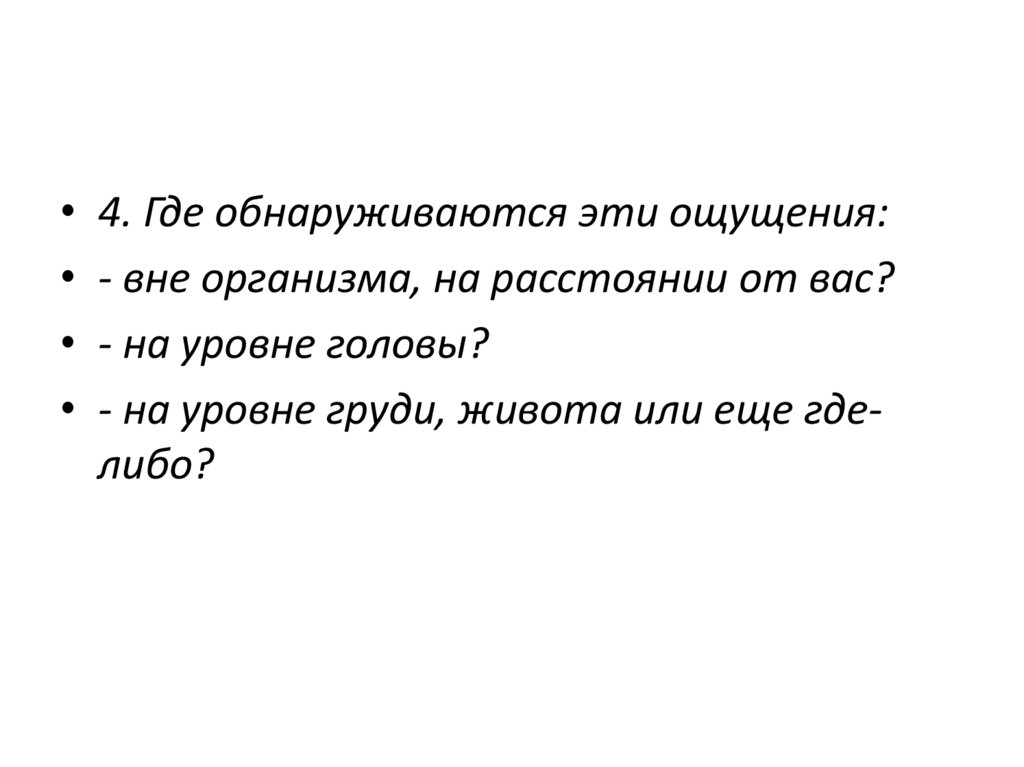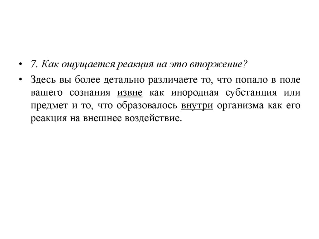 • 7. Как ощущается реакция на это вторжение?• Здесь вы более детально различаете то, что попало в поле