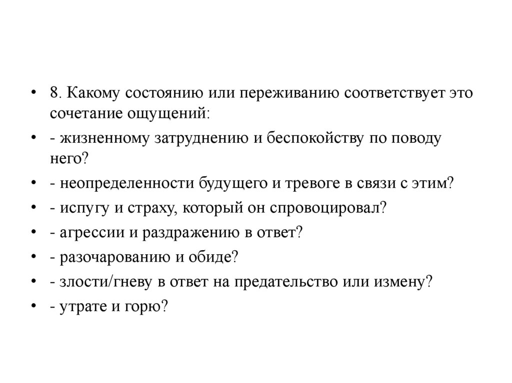 • 8. Какому состоянию или переживанию соответствует этосочетание ощущений: