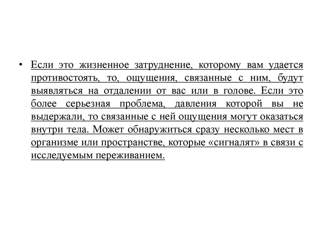 • Если это жизненное затруднение, которому вам удаетсяпротивостоять, то, ощущения, связанные с ним, будут