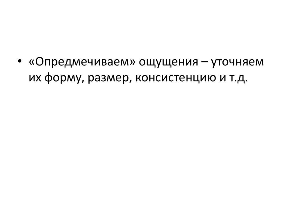 • «Опредмечиваем» ощущения – уточняемих форму, размер, консистенцию и т.д.