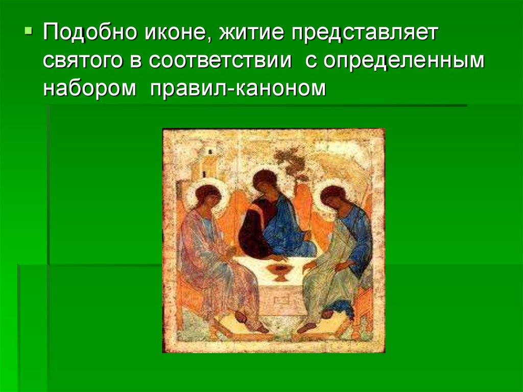 Подобно иконе, житие представляетсвятого в соответствии с определенным