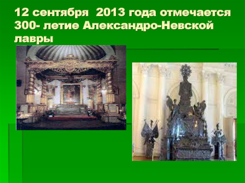 11. 12 сентября 2013 года отмечается 300- летие Александро-Невской лавры