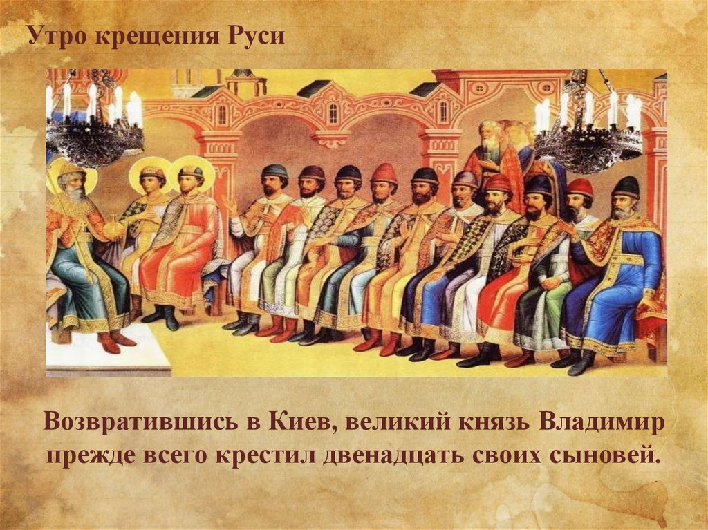 Утро крещения РусиВозвратившись в Киев, великий князь Владимир