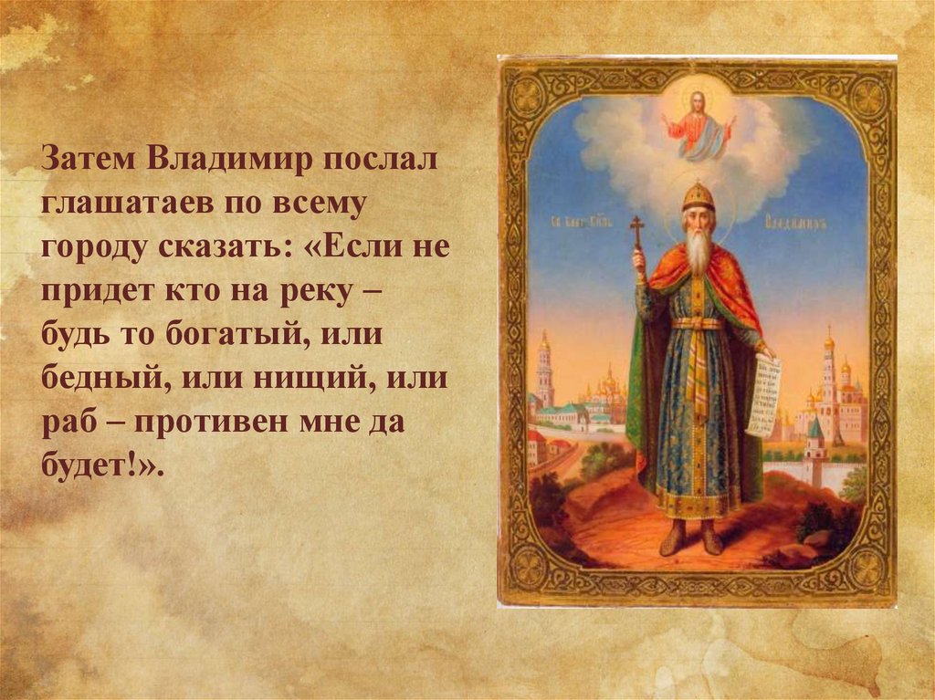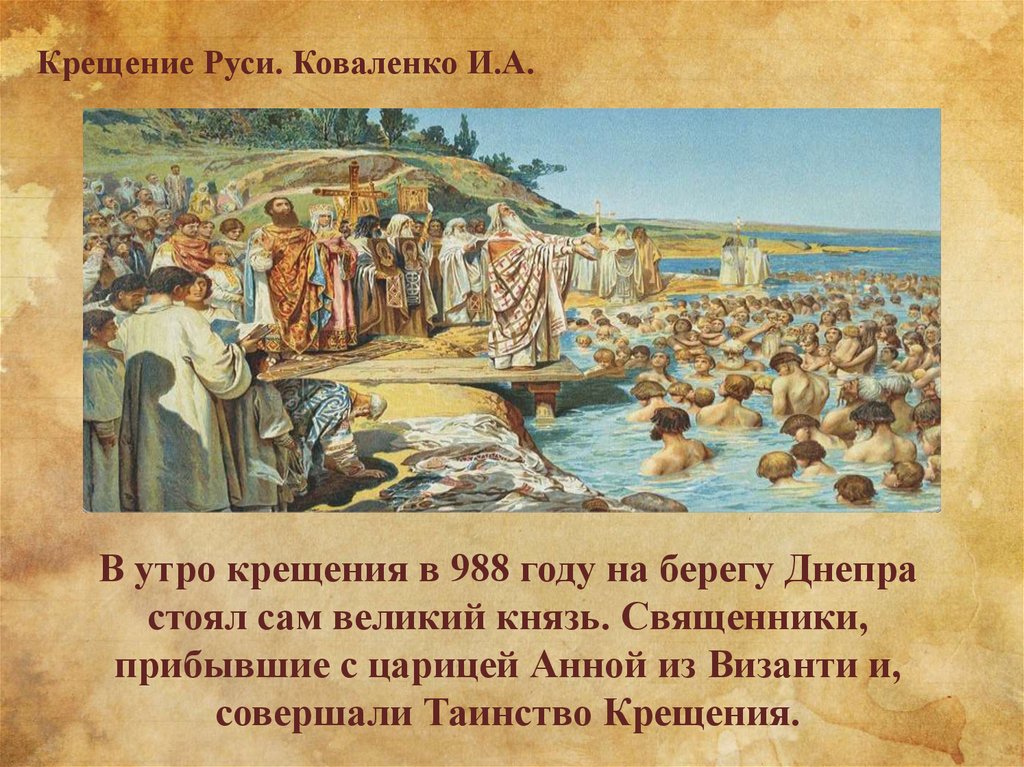 Крещение Руси. Коваленко И.А.В утро крещения в 988 году на берегу Днепра