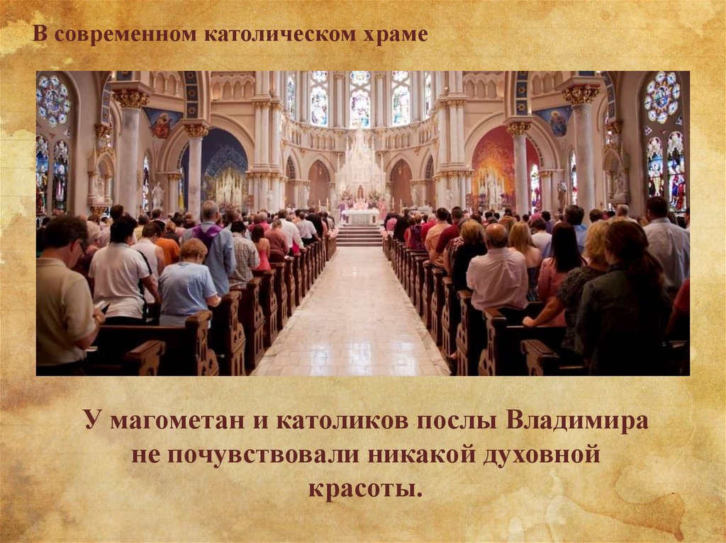 В современном католическом храмеУ магометан и католиков послы Владимира