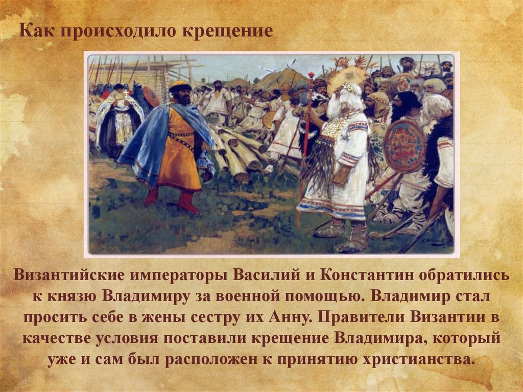Как происходило крещениеВизантийские императоры Василий и Константин обратились
