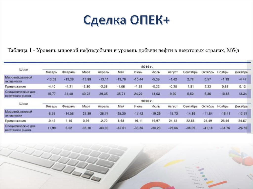 Таблица 1 - Уровень мировой нефтедобычи и уровень добычи нефти в некоторых странах, Мб/д10.