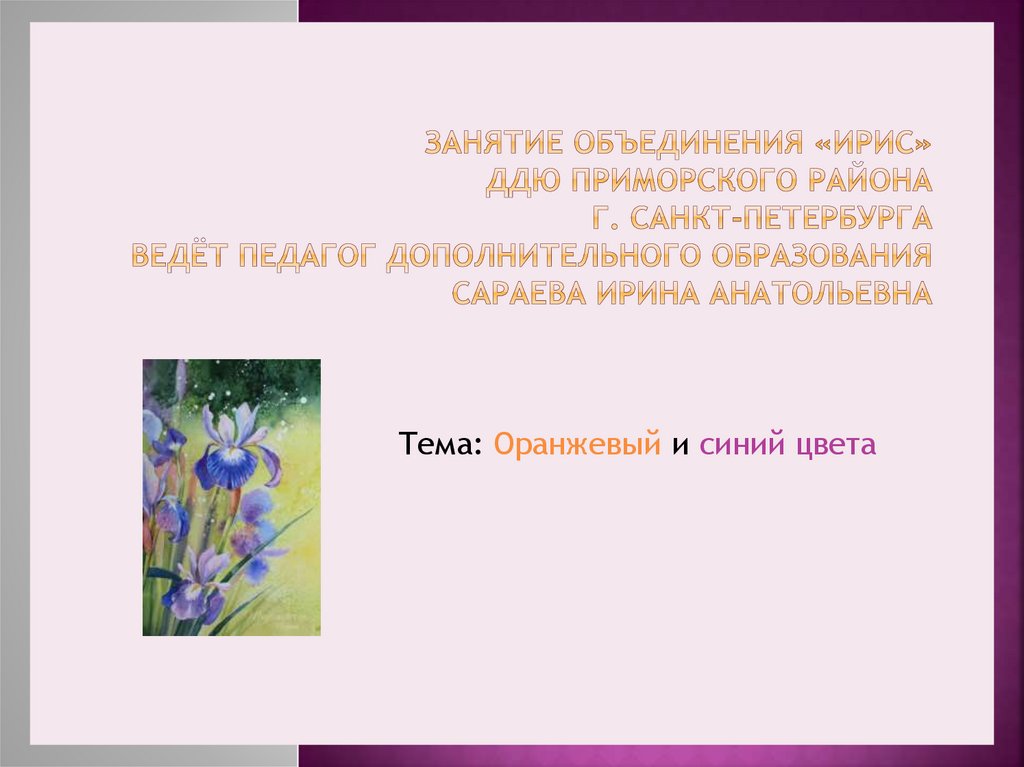 1. Занятие объединения «Ирис» ДДЮ Приморского района г. Санкт-Петербурга Ведёт педагог дополнительного образования Сараева Ирина
