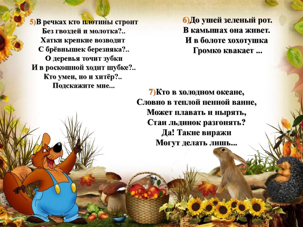 5)В речках кто плотины строитБез гвоздей и молотка?..