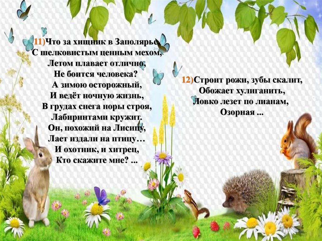 11)Что за хищник в Заполярье,С шелковистым ценным мехом,
