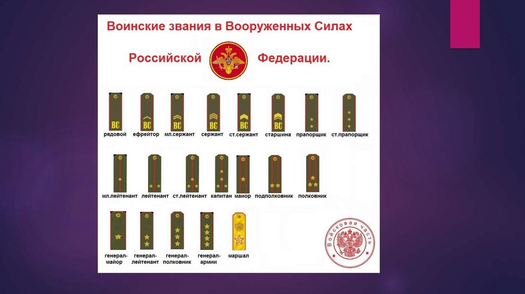 Воинские звания военнослужащих ВС РФ. Военная форма одежды
