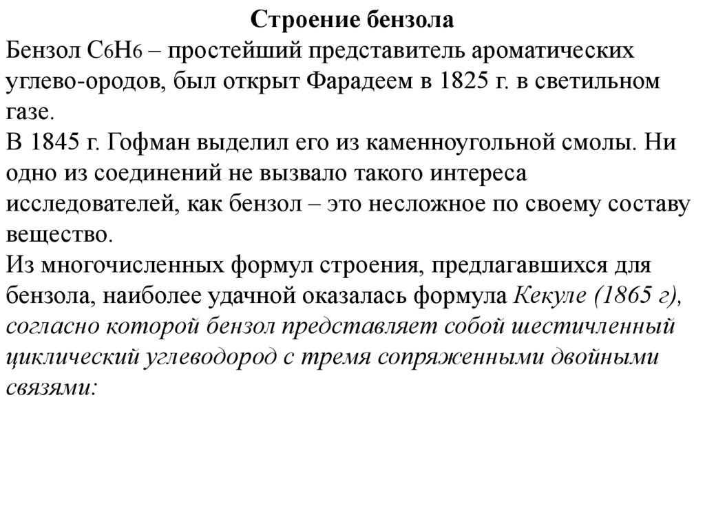 бензола, наиболее удачной оказалась формула Кекуле (1865 г),