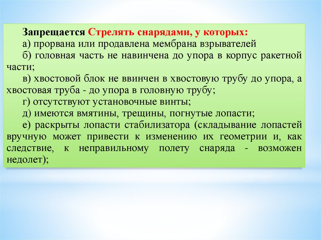 транспортировке снарядов взрыватели не должны быть