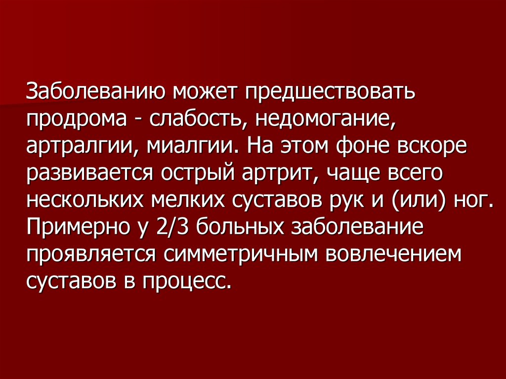 Заболеванию может предшествоватьпродрома - слабость, недомогание,