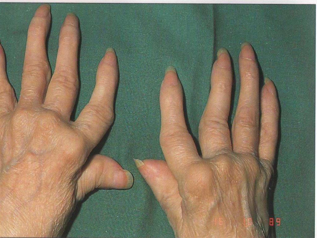 Типичными для РА изменениями являютсяподвывихи метакарпофаланговых суставов с