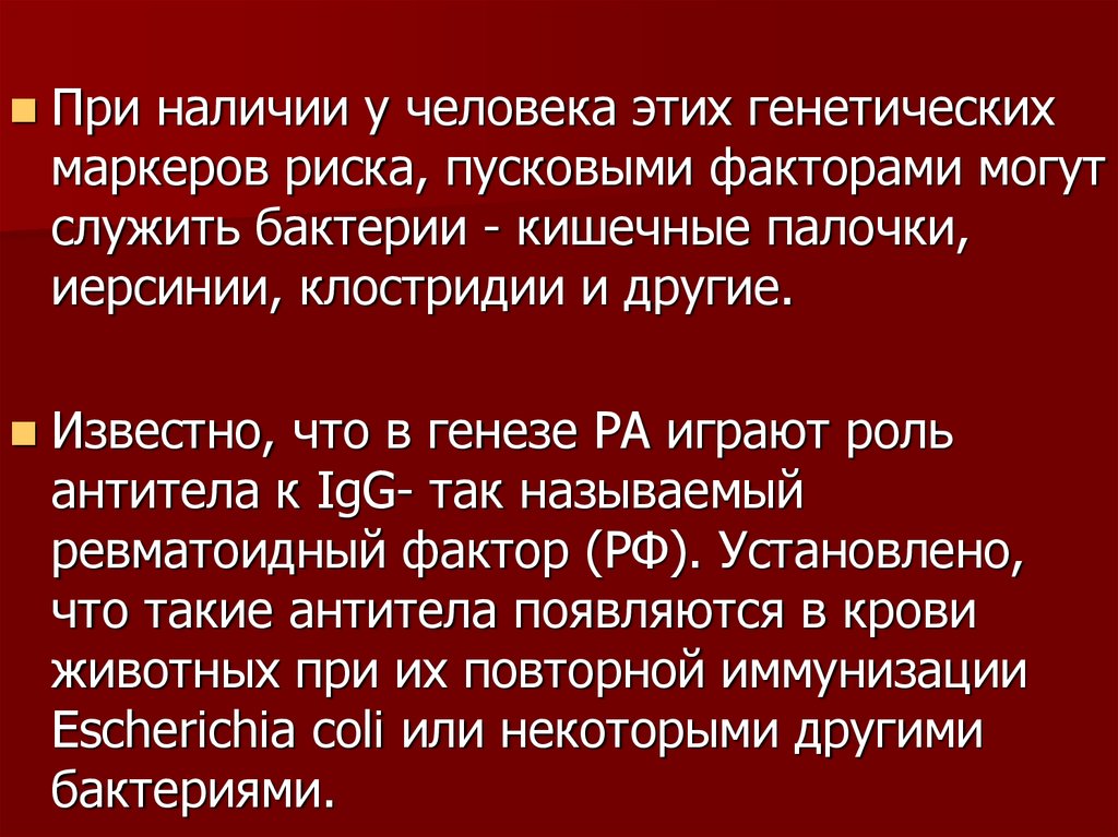При наличии у человека этих генетическихмаркеров риска, пусковыми факторами могут