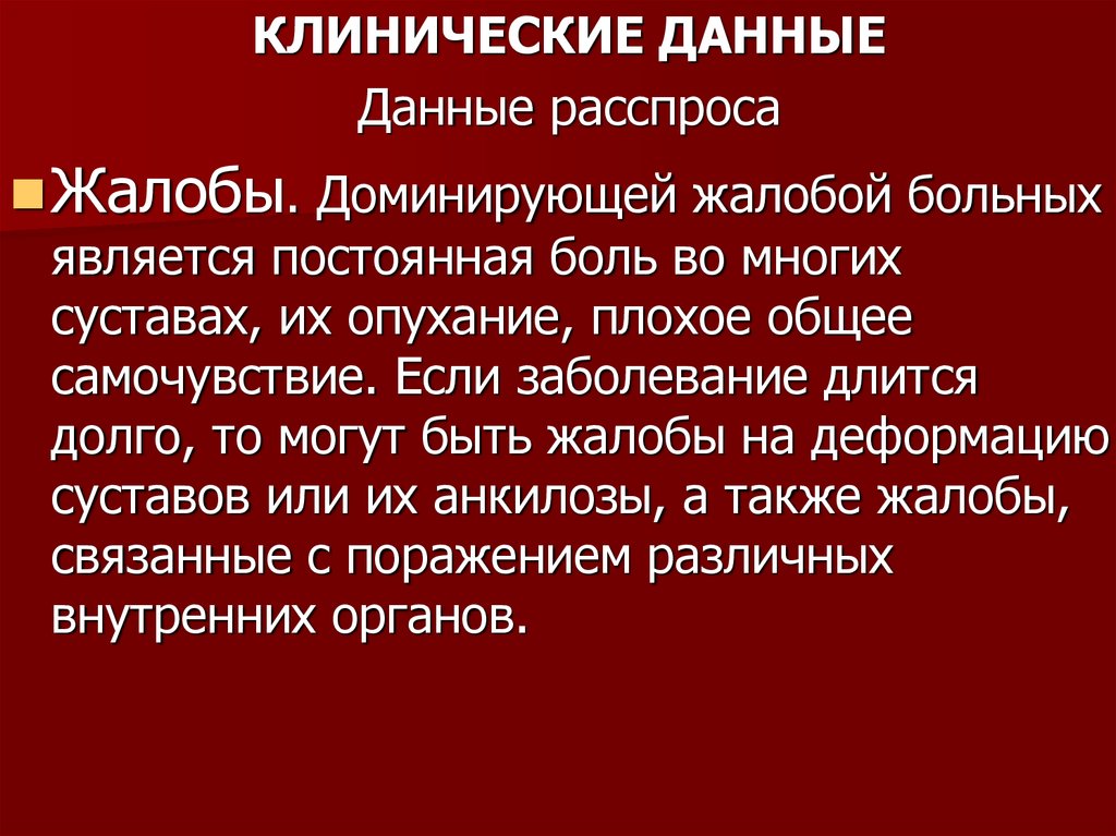 Анамнез заболевания.Выясняют когда заболел, с каких суставов началась