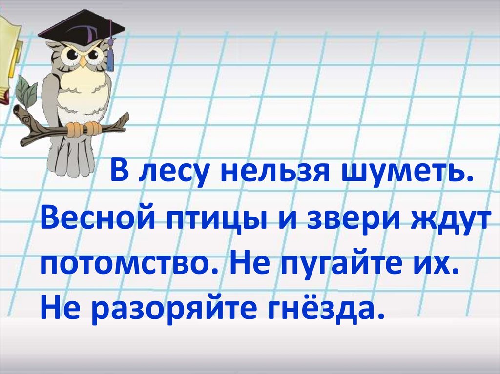 В лесу нельзя шуметь.Весной птицы и звери ждут