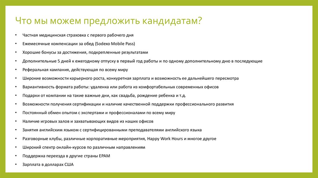 Широкие возможности карьерного роста, конкуретная зарплата и возможность ее дальнейшего пересмотра