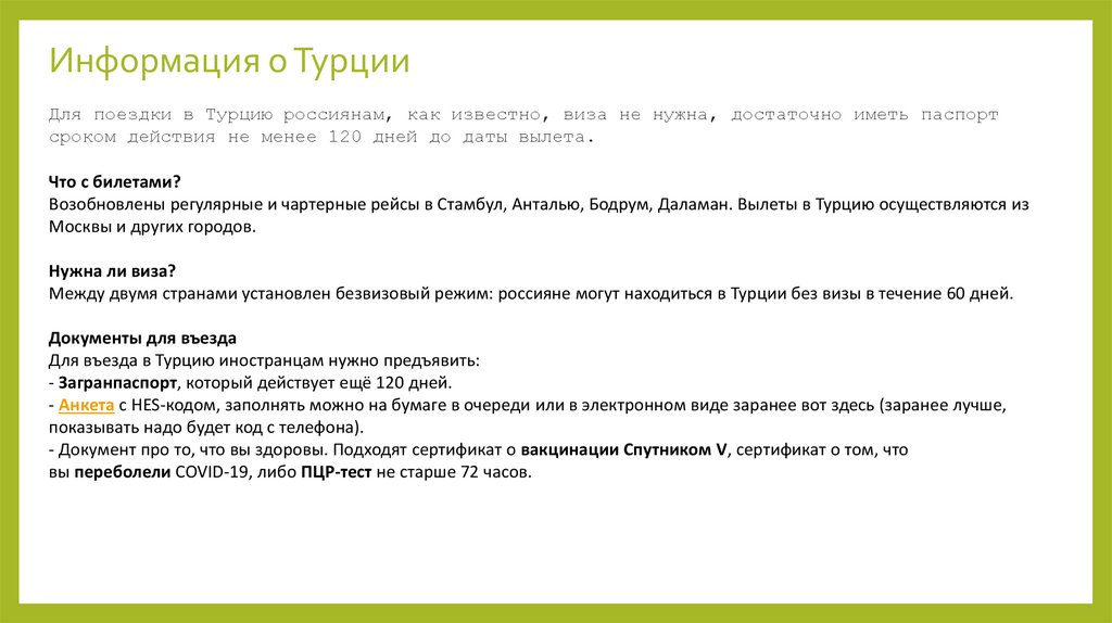 Информация о ТурцииДля поездки в Турцию россиянам, как известно, виза не нужна, достаточно иметь паспорт