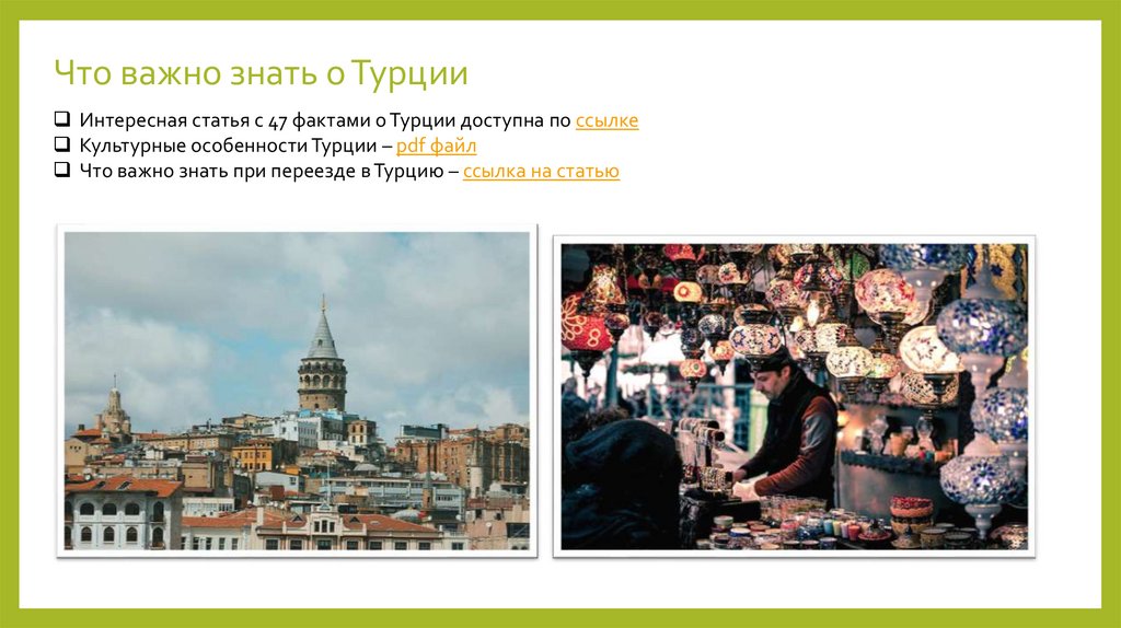 Интересная статья с 47 фактами о Турции доступна по ссылкеКультурные особенности Турции – pdf файл
