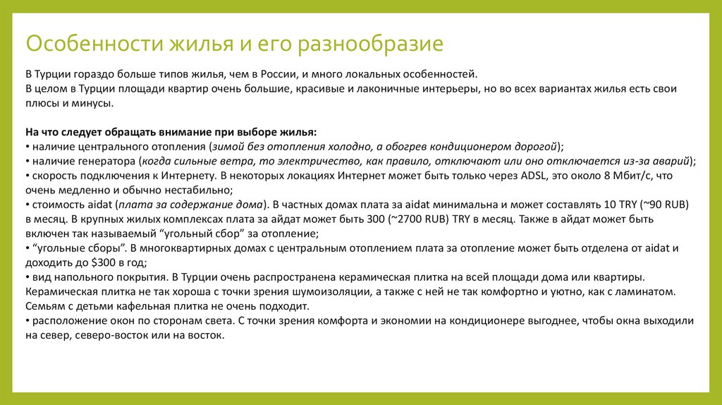 Особенности жилья и его разнообразиеВ Турции гораздо больше типов жилья, чем в России, и много локальных особенностей.