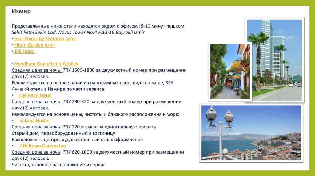 ИзмирПредставленные ниже отели находятся рядом с офисом (5-10 минут пешком)