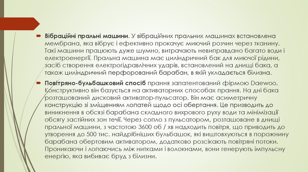 3. 1. Процес прання. Устаткування для прання. Принцип дії, класифікація, основні технічні характеристик