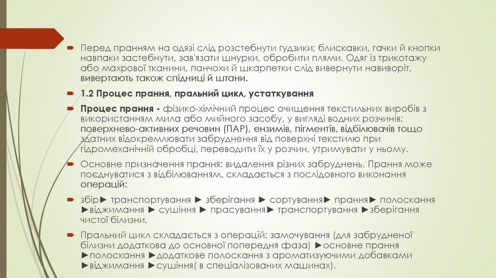 1.2 Процес прання, пральний цикл, устаткування