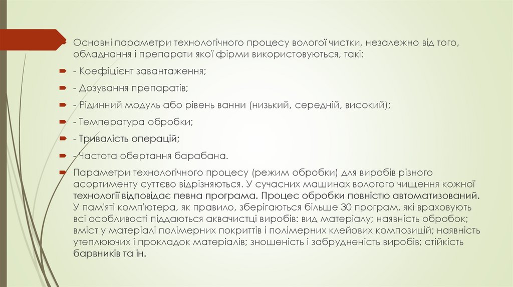 «Машини для хімічного чищення одягу» до основних параметрів машин відносяться: