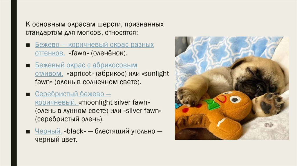 1. Виды окрасов мопсов.