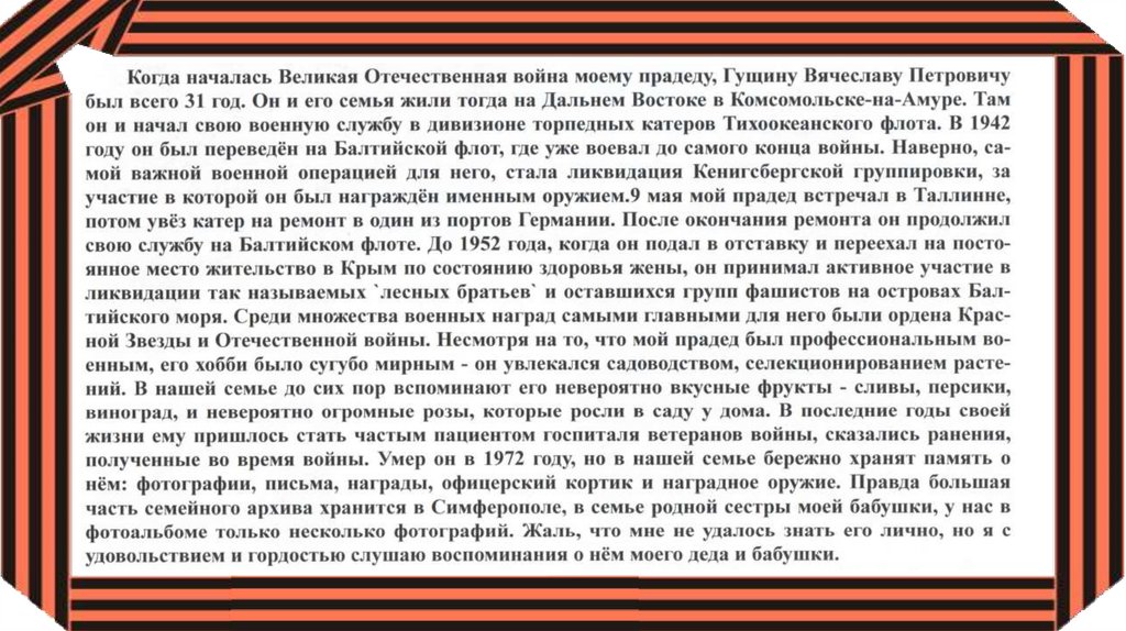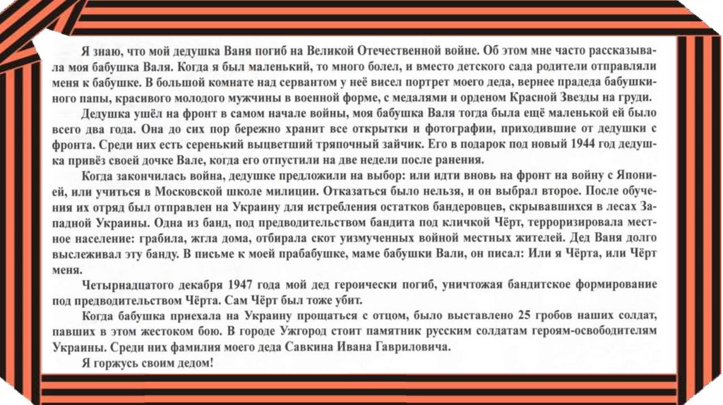 свидетелям той ужасной войны. В ознаменование