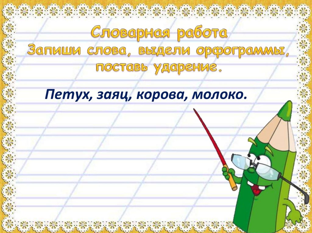 Петух, заяц, корова, молоко.
