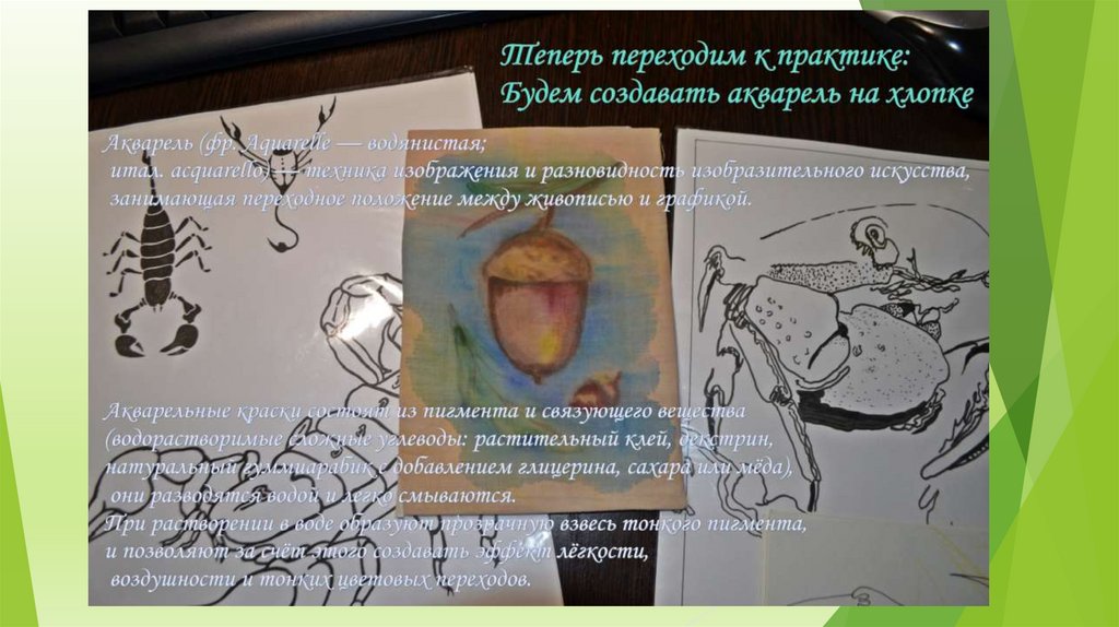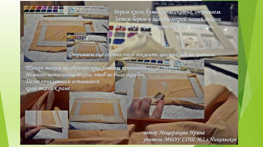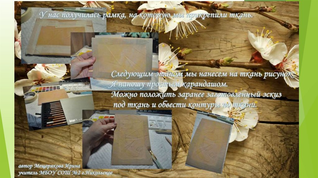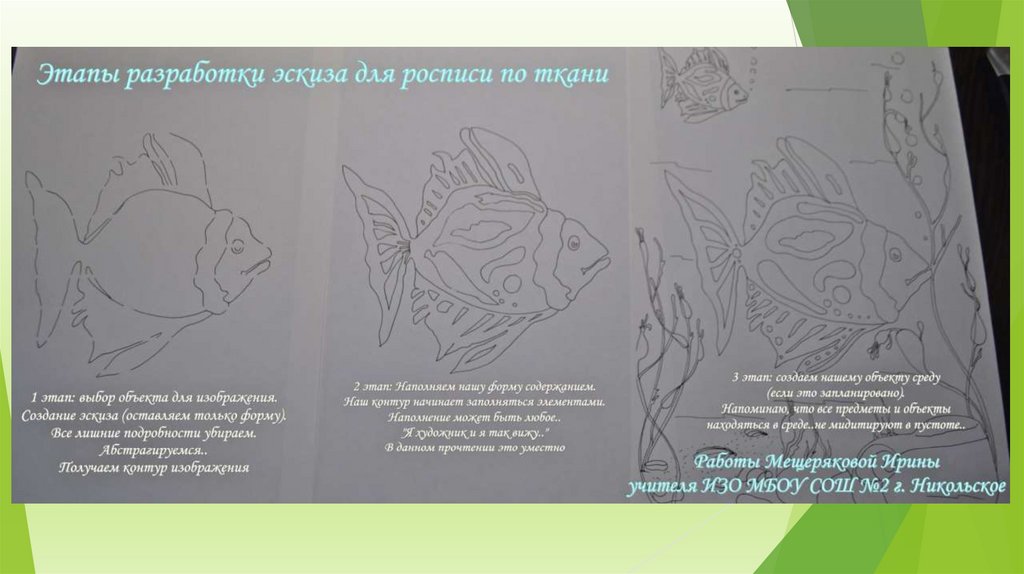 краску. Именно поэтому линии рисунка в батике должны быть непрерывными, замкнутыми.