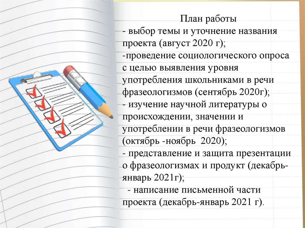 План работы- выбор темы и уточнение названия