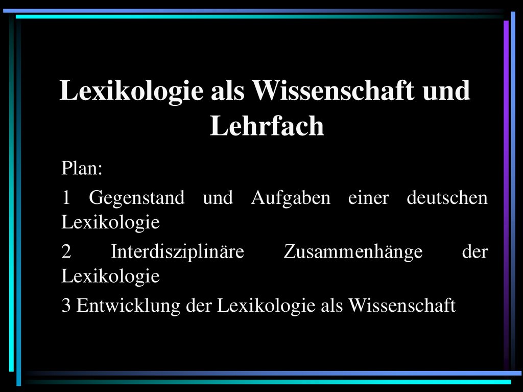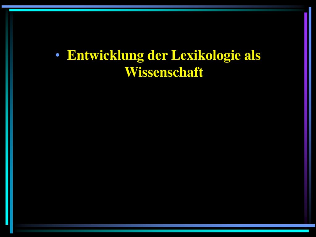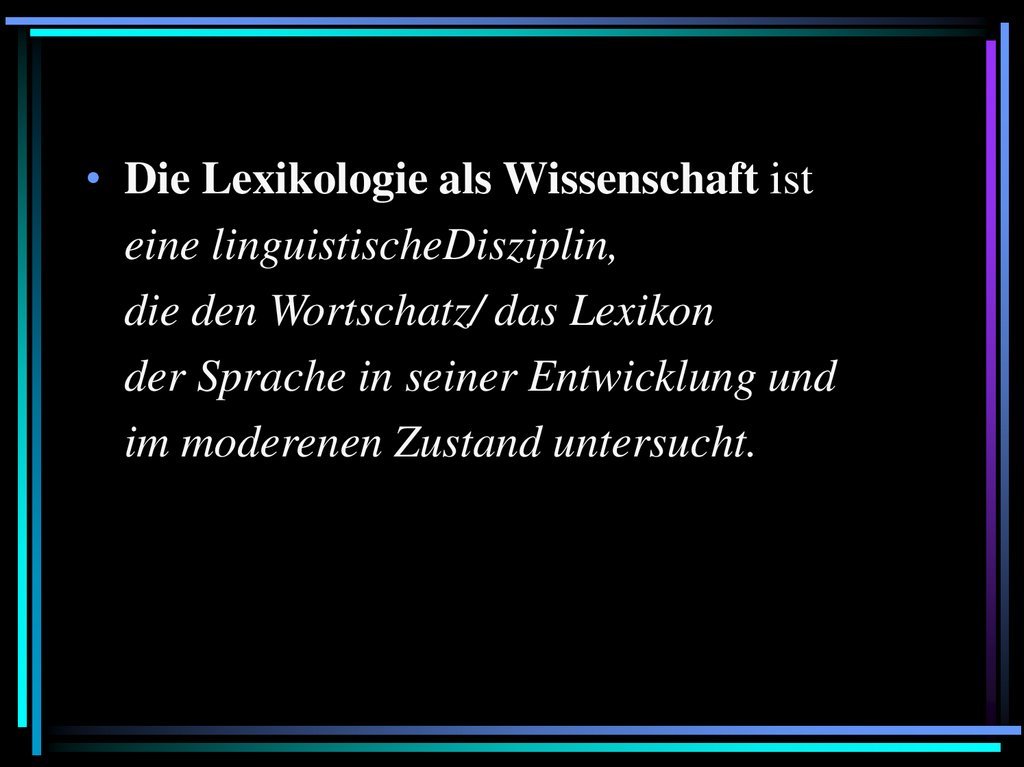 • Die Lexikologie als Wissenschaft isteine linguistischeDisziplin,