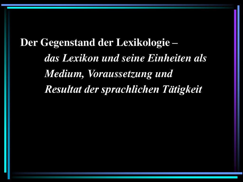 Der Gegenstand der Lexikologie –das Lexikon und seine Einheiten als