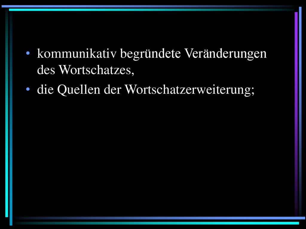 • kommunikativ begründete Veränderungendes Wortschatzes,