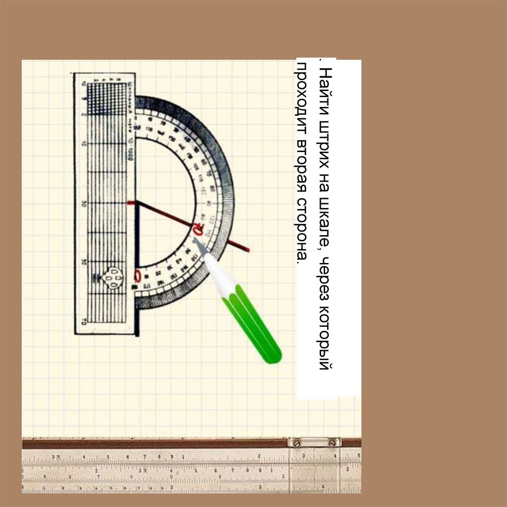 . Найти штрих на шкале, через которыйпроходит вторая сторона.