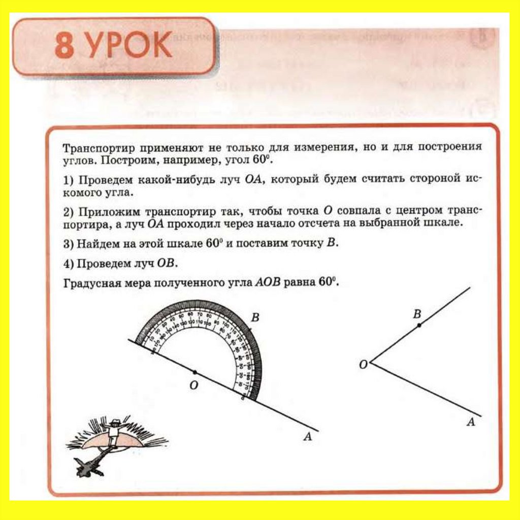 построения и измерения углов. Транспортир